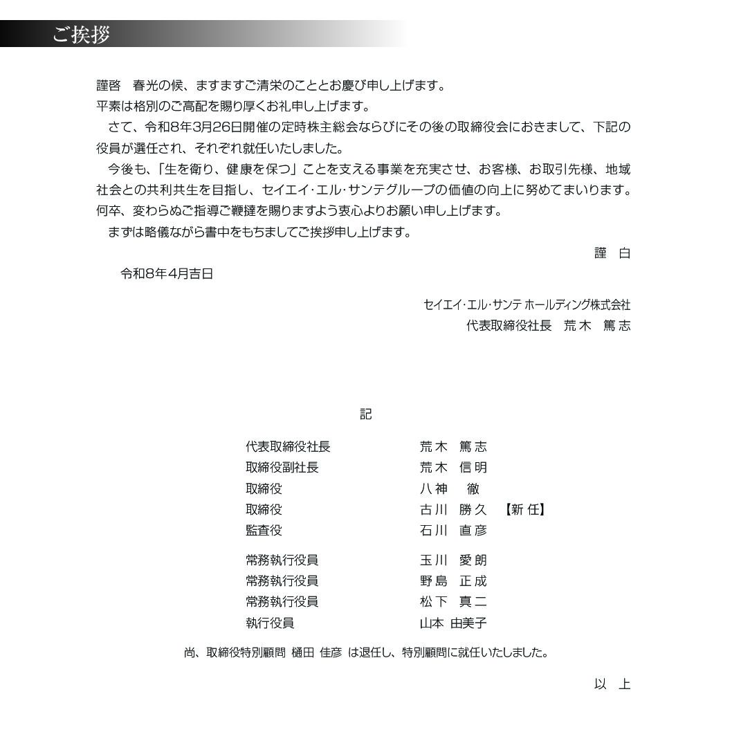 役員選任のお知らせ
